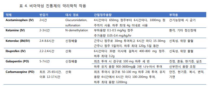 - 진통제의 선택은 각 약제의 특성 및 부작용을 고려하여야 함